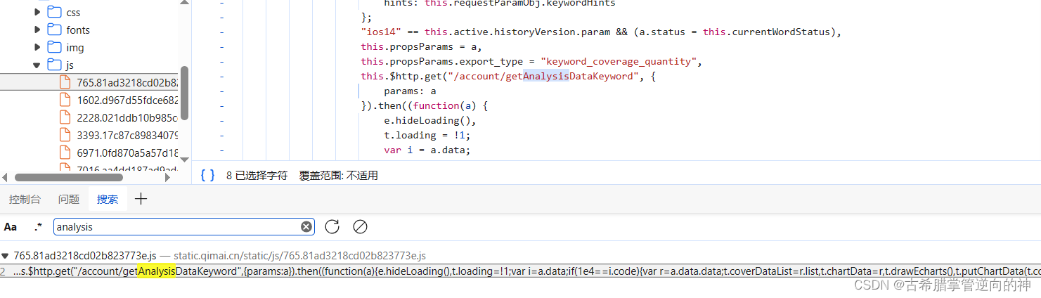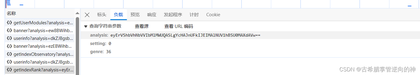 首先我们看到所有的请求中都有analysis参数,一看就知道这个参数是加密的了,所以我们就来分析它的流程