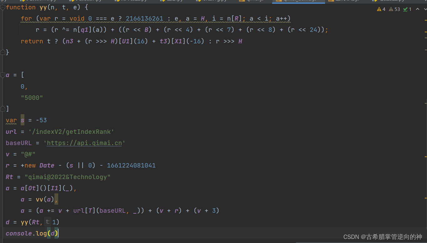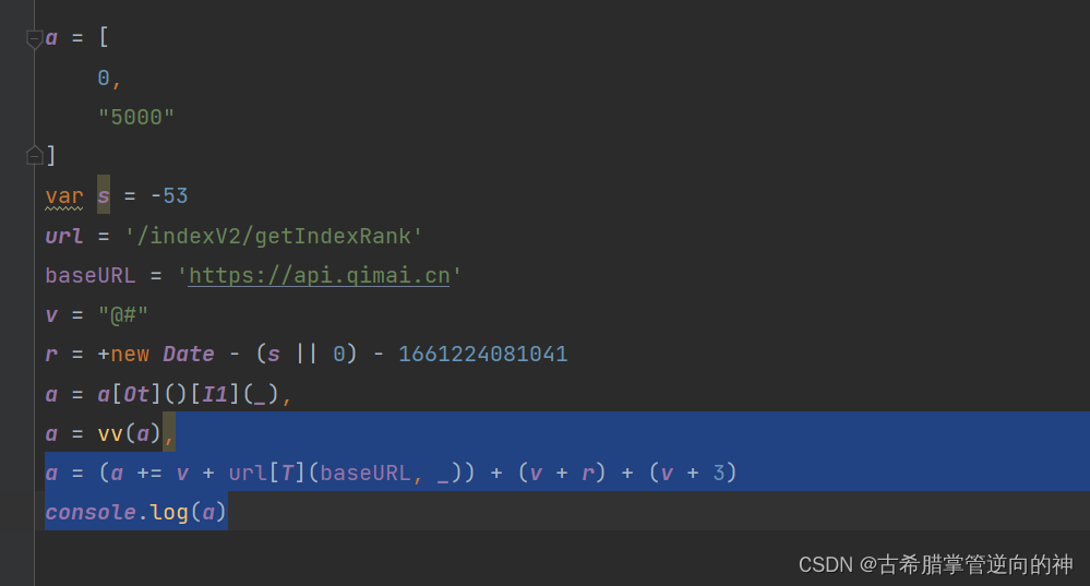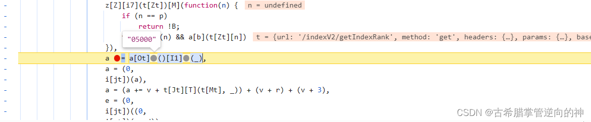 继续往下看a = (a += v + t[Jt][T](t[Mt], _)) + (v + r) + (v + 3)这里面需要分析就是这个r,r往上找就可以发现是时间戳在进行一些计算得到的m在上面可以拿到,断了几次都是固定的,你们可以自己去看