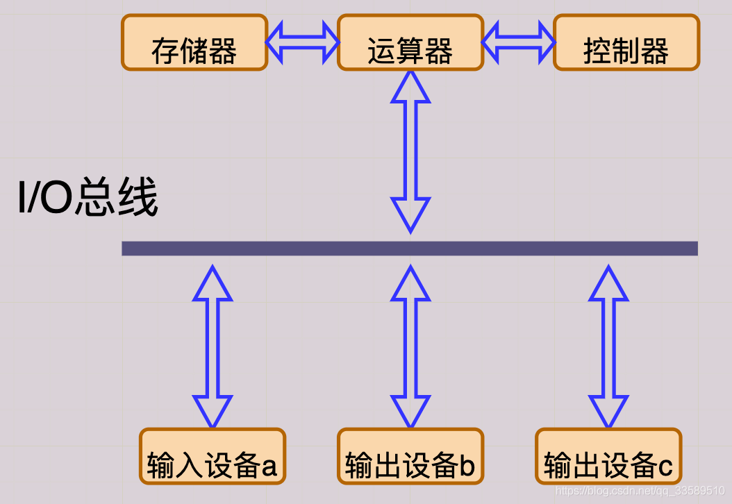 试想如果没有总线,当我们需要新加一个输入设备后,为了维持与各个设备的通信又得加一堆线路。而有了 I/O 总线后就像下图达到解耦清晰而统一。