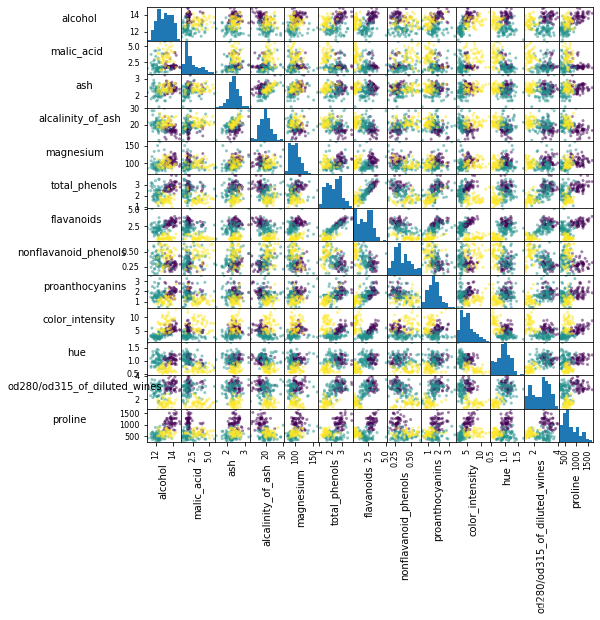 AXS = PD 。绘图。scatter_matrix ( wine_df ,