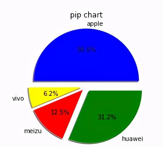 values=[10,20,50,80] colors=['yellow','red','green','blue']