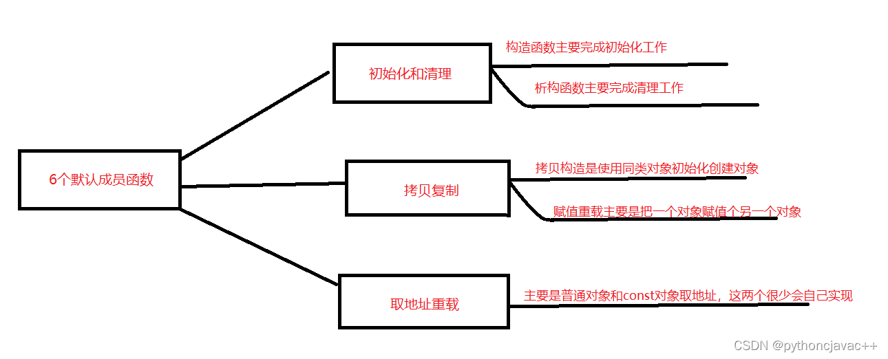 首先来讨论一下空类,空类里面真的什么都没有吗,如果是这样的话那么与C语言的结构体相差并不大,众所周知C++是在C语言的基础上进行优化,也可以是说把C语言的漏洞补上,所以空类并不是什么都没有,任何类在什么都不写时,编译器会自动生成以下6个默认成员函数。
