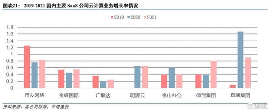 1)SaaS层增长迅速,抗周期波动能力强。根据最新财报披露,国内代表性的几家SaaS公司云计算业务增长迅速。除了中国有赞负增长,其余公司上半年整体增速在26%-71%区间,增加较为强劲。 重点公司:明源云(HK)、用友网络。