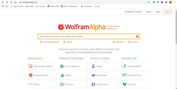 如果您没有,请登录 wolfram alpha 的官方页面并创建一个帐户。