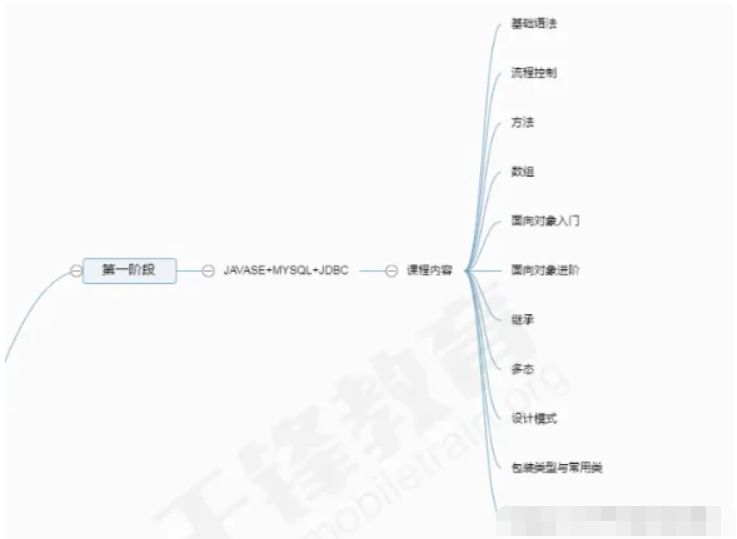 为JAVASE+MYSQL+JDBC,主要学习一些Java语言的概念,如字符、流程控制、面向对象、进程线程、枚举反射等,学习MySQL数据库的安装卸载及相关操作,学习JDBC的实现原理以及Linux基础知识,是大数据刚入门阶段。