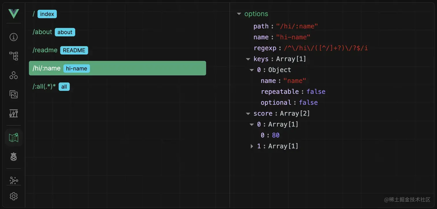 Routes 是一个与 Vue Router 进行集成的功能,它允许你查看你所注册的路由及相关详细信息。