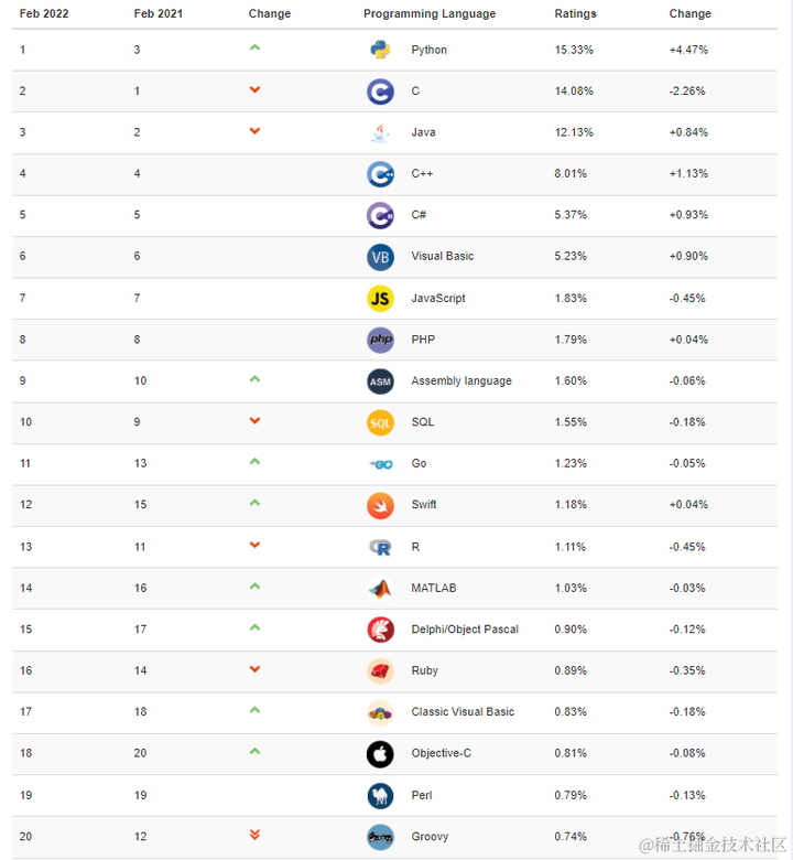 Python语言在近年不断的被提到台面上,在最新发布的2022年2月份TIOBE编程语言排行榜上,Python语言已经来到了第三名的位置,并且仅仅与第二名的Java相差不到1个百分点,并且还在程上升的趋势,相信超越Java指日可待。