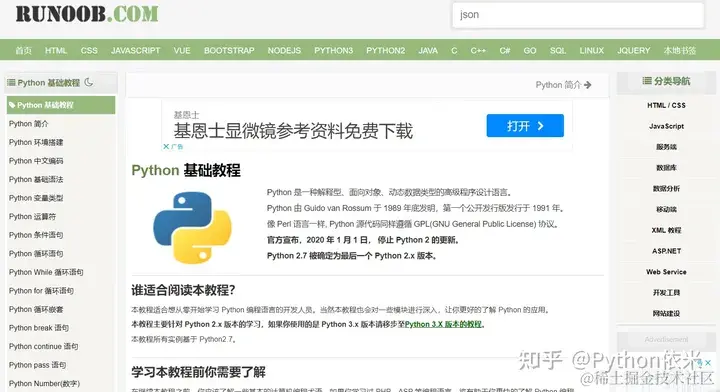 Python 基础教程 | 菜鸟教程 www.runoob.com/python/python-tutorial.html