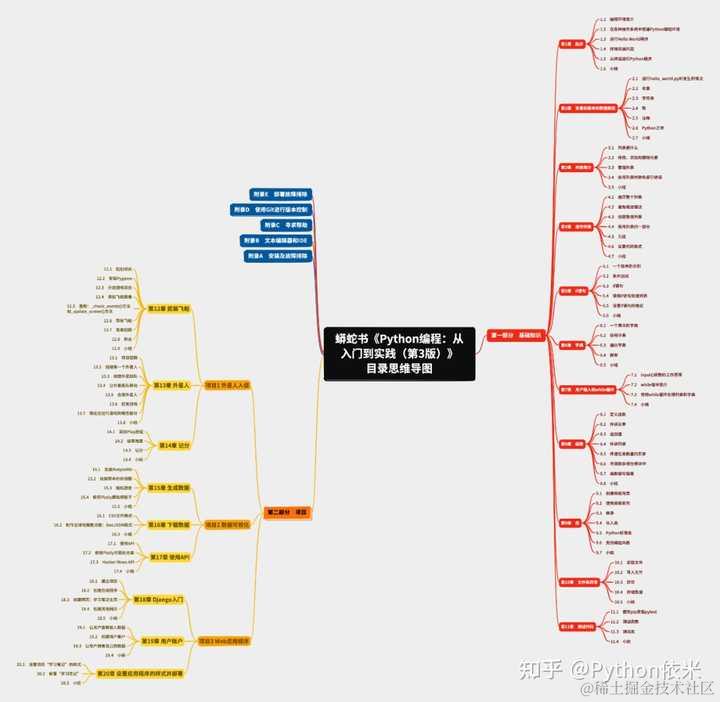第一部分:基础知识篇,介绍了用 Python 编程所必须了解的基本概念,包括强大的 Python 库和工具,以及列表、字典、if语句、类、文件和异常、代码测试等内容。