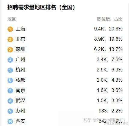 随着近几年Python的大火,全国python岗位的需求量接近10万,上海岗位需求量居首位,占比20.6%,北京Python工程师岗位需求量居第二位占比19.6%,其次是深圳、广州、杭州等一线城市。