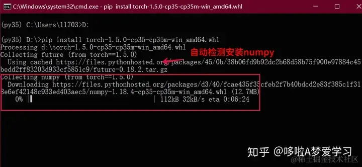 这里注意: 安装Pytorch需要依赖包numpy、future,可以提前安装好,安装torch检测到没有numpy时,会自动帮我们下载安装依赖包numpy、future,不用担心,但是过程缓慢,建议提前安装后numpy、future。