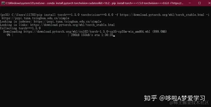 下载安装torch完成后,我们开始安装torchvision,torchvision需要安装依赖包pillow,这里教大家提前安装的方法,使用如下命令,如果出现问题加上信任选项 trusted host,pip install-i https://pypi.tuna.tsinghua.edu.cn/simple–trusted-hostpypi.tuna.tsinghua.edu.cn pillow