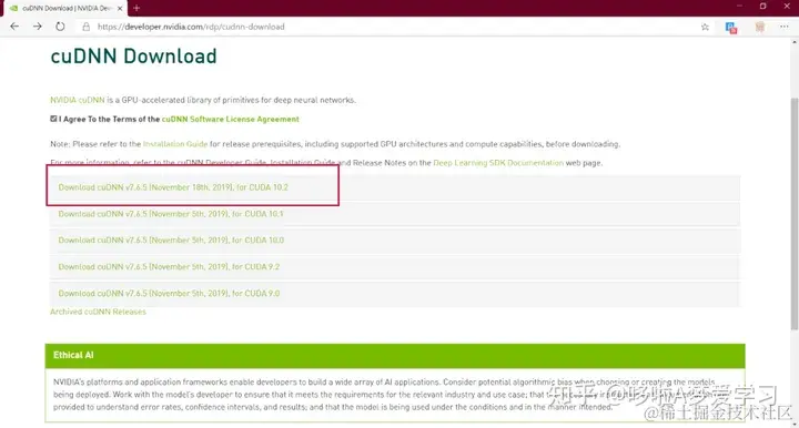 第一步: 官网下载cuDNN的安装包,地址:https://developer.nvidia.com/cudnn,这里需要你注册一个账号,按照要求注册完就可以下载安装包了,这里我的CUDA安装的是10.2版本的,我就安装与我CUDA对应的cuDNN了。