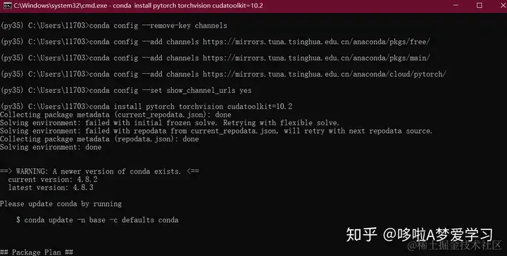 友情提示: 如果你想再次换源安装,需要使用以下命令conda config --remove-key channels恢复默认源的命令,否则会报错,然后再次配置你想要的镜像源。