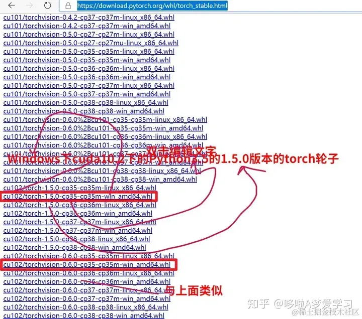 pytorch轮子文件下载地址:https://download.pytorch.org/whl/torch_stable.html,分别下载安装torch和torchvision安装包,这里请注意自己安装的CUDA、以及torch、torchvision版本匹配,最后创建的Python环境请和下载的一致。如下图举例