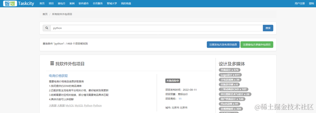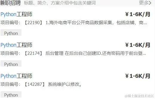 这个网站上面的python兼职比较简单,相对的薪资也会比较低,比较适合新手练练手。