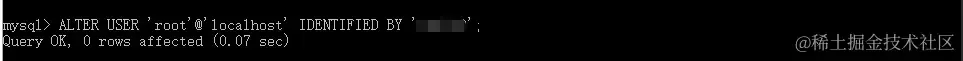 ALTER USER ‘root’@‘localhost’ IDENTIFIED BY ‘123456’;