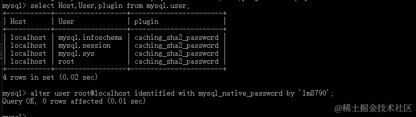 alter user root@localhost identified with mysql_native_password by ‘123456’;