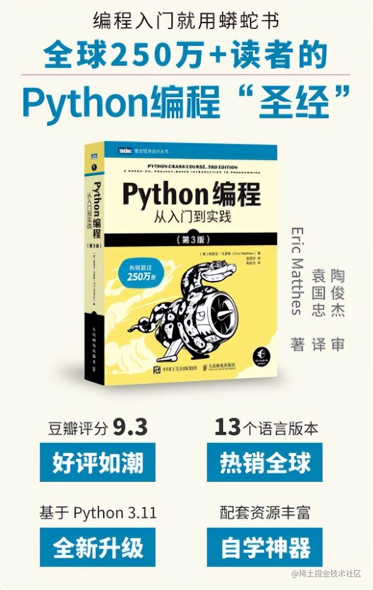 什么样的书能“异常”靠谱?能在豆瓣被读者打出 9.3分,能在Amazon 被读者打出4.7星评?能让全球近 300 万读者疯狂种草,甚至被赞为Python入门“圣经”?