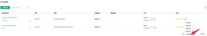 进入GPU 云实例页面,点击操作-更多-访问控制: