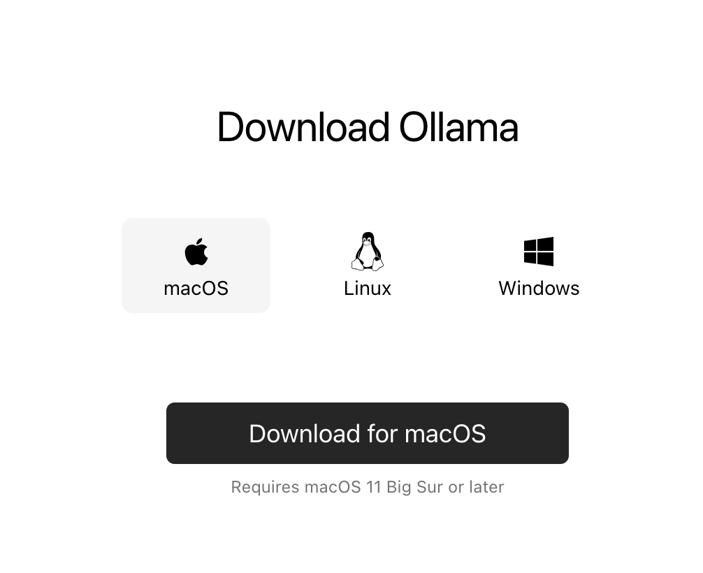 进入到ollama官网 https://ollama.com,直接点击download,download for macOS,下载完毕后正常安装。