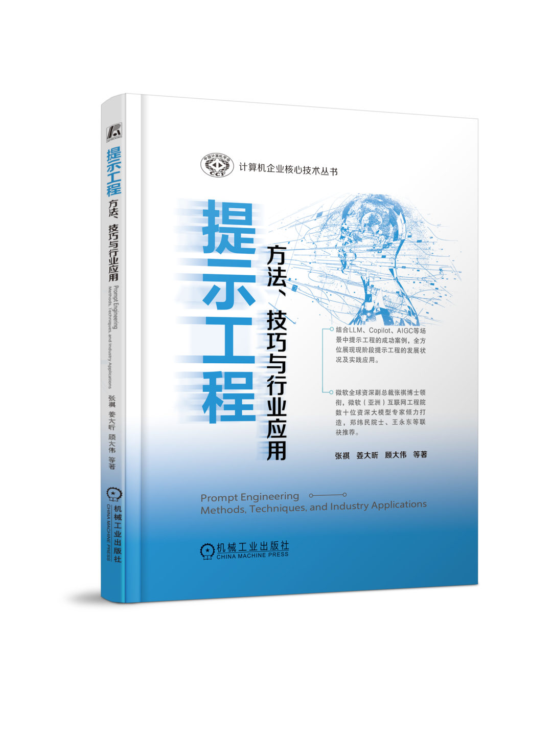 推荐理由: 中国工程院院士郑纬民作序!微软全球资深副总裁张祺博士领衔微软(亚洲)互联网工程院十余位资深大模型专家倾力打造!本书结合LLM、Copilot、AIGC等场景中提示工程的成功案例,全方位展现现阶段提示工程的发展状况及实践应用。本书揭示大语言模型背后技术奥秘的“金钥匙”,从宏观到微观全方位解读AI创新世界,帮助读者释放创造力、解放生产力、提升技术力。