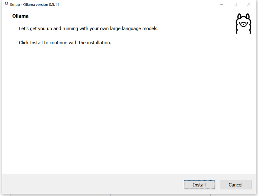 打开Ollama安装包(OllamaSetup.exe),点击“Install”开始安装。