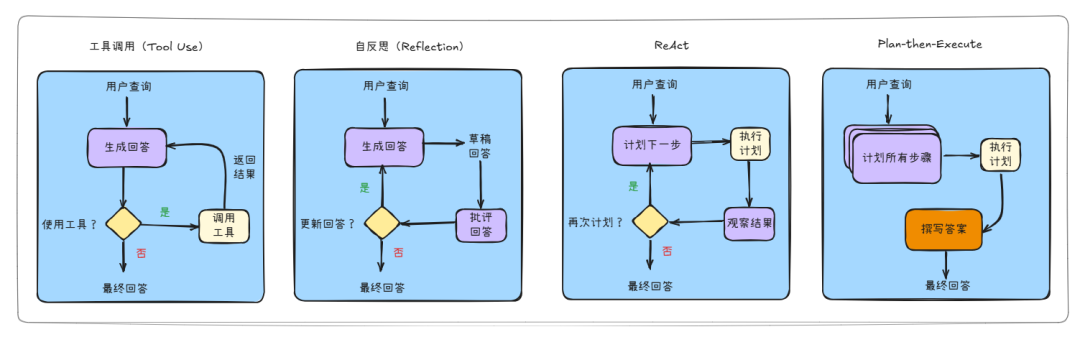 其中,ReAct 和 Plan-then-Execute 是构建通用单Agent最常见的起点。