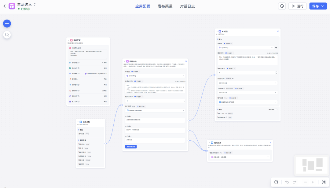 我们使用FastGPT已有的模版创建一个“生活达人”工作流,如果问菜谱相关的问题,使用大模型回答,否则不做解答,支持ASR语音实时输入和TTS语音输出。