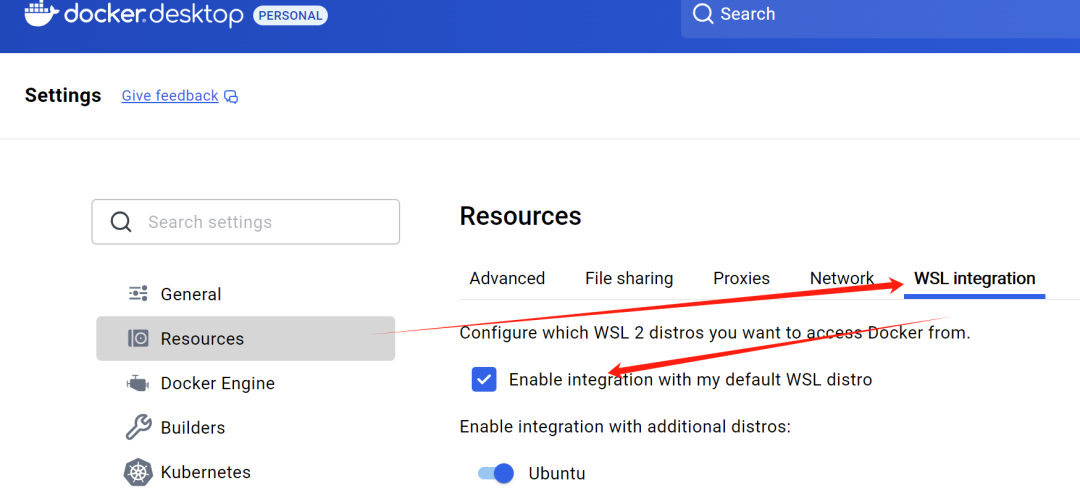 安装后,打开Docker Desktop,确保下面两个选项是勾选了的。