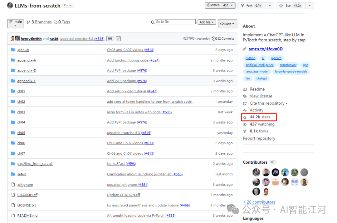 这本书不仅讲解了 Transformer 的核心机制,更配备了高质量的开源代码仓库,让你真正“看得懂 + 跑得通 + 改得动”。这个 GitHub 仓库目前斩获 44.2K 的 Star!