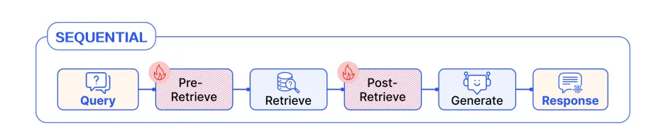 整个RAG流由各个Module线性串联起来,为最简单的模式。