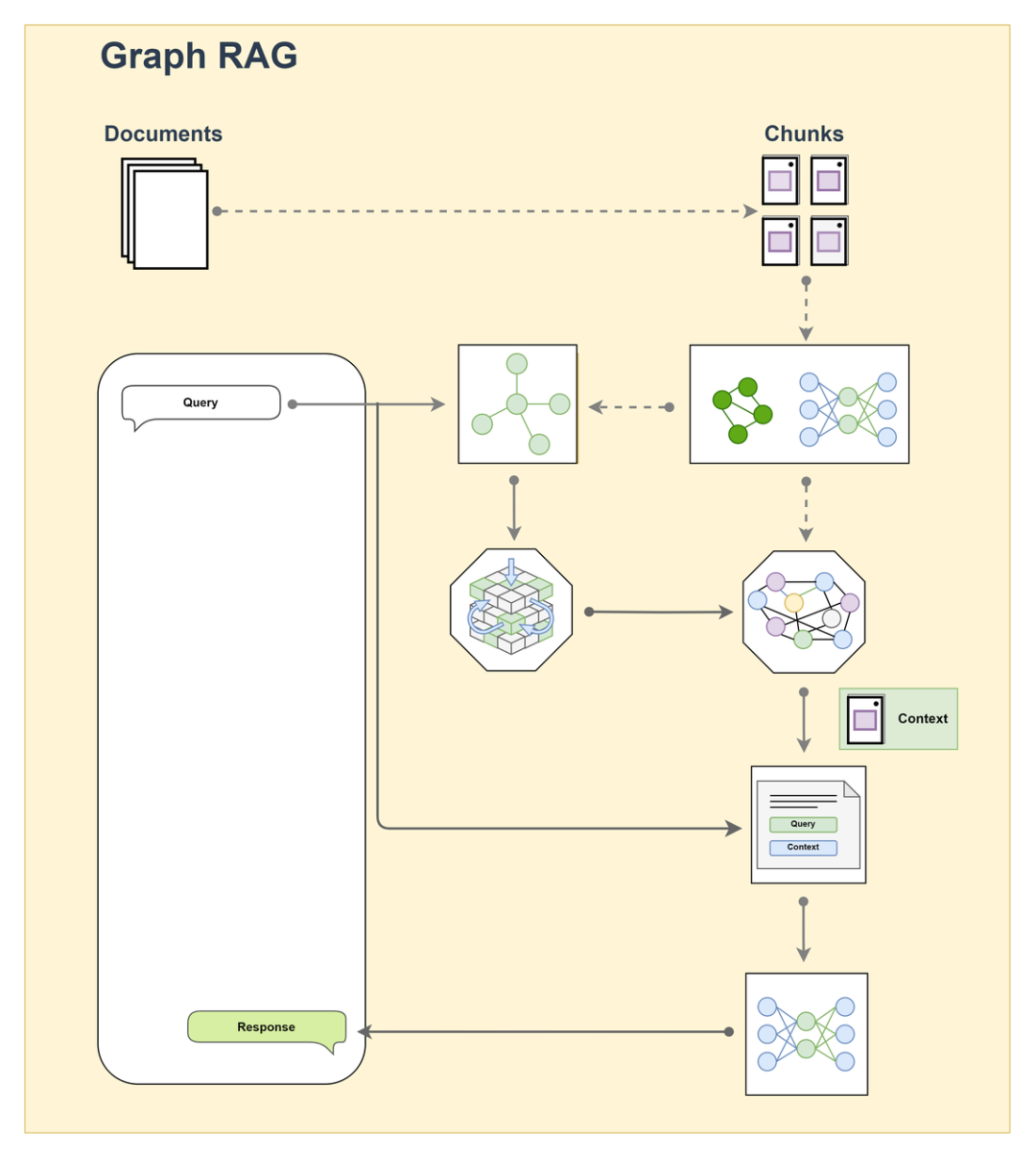 该模型是对基础 RAG 架构的一种扩展,通过引入图数据库来增强知识点之间的关联和文档间关系的理解。