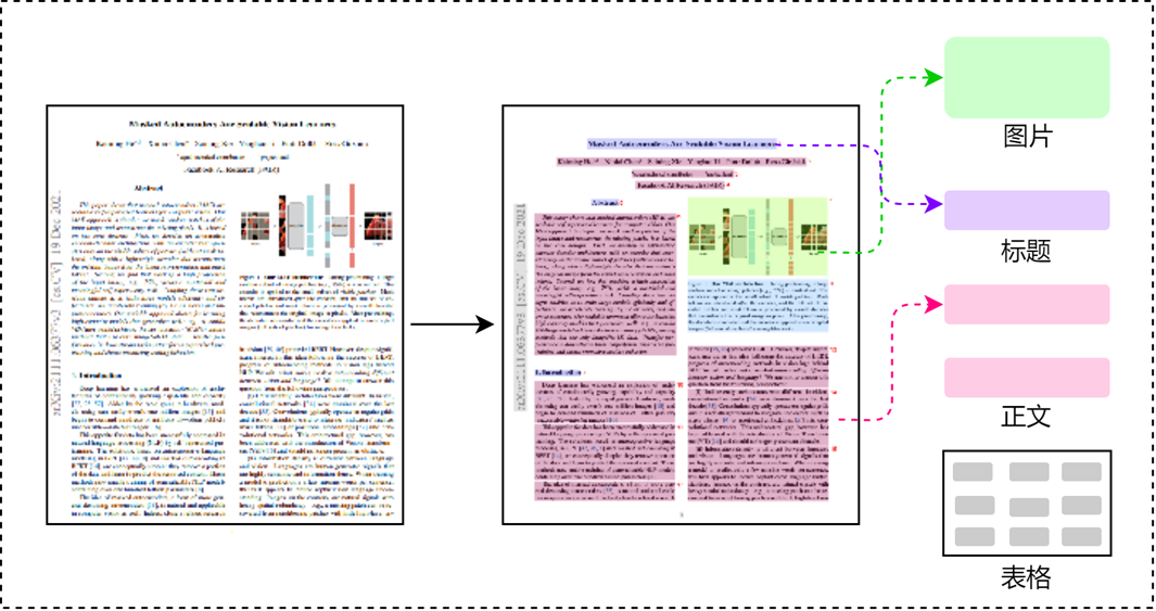 为了让 RAG 在线阶段能够顺利运作,前期需要对各种数据进行处理,这其中文档的读取与解析至关重要。在收集数据时,会从各类来源,如文档、数据库、API、网页等,收集大量文本数据,以此构建丰富的知识库。收集来的文档格式多样,有 PDF、Word、Excel、PPT 等,涵盖了不同类型的信息,这使得数据准备工作变得复杂,所以需要有效的文档读取与解析方法来处理这些不同格式的数据。下图是一个简单的PDF文档读取与解析的示例,向我们直观地展示了文档读取与解析的流程。