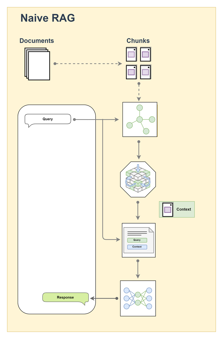 RAG技术的基础版本,用于结合检索和生成来处理复杂的任务,比如问答或内容生成。