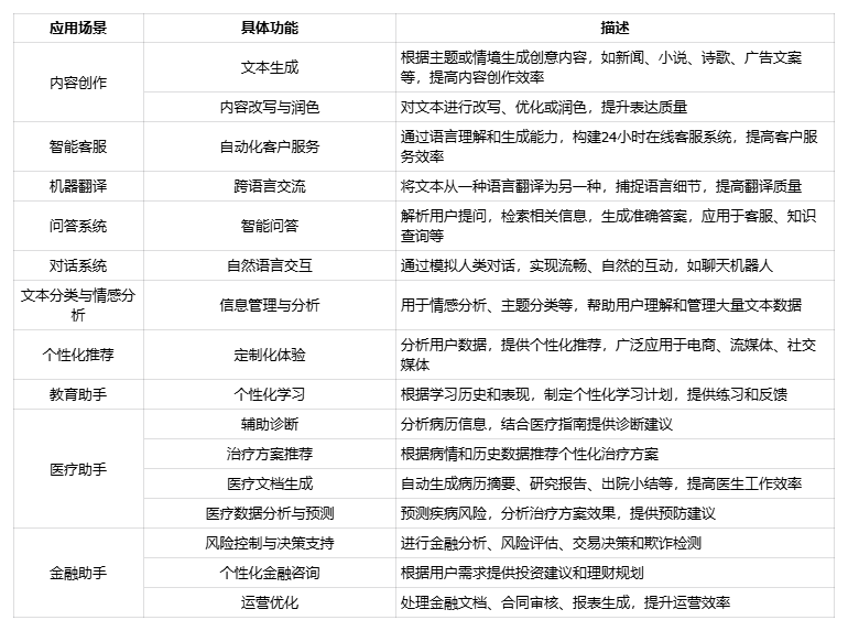 大模型凭借其强大的自然语言处理能力,在多个领域展现出广泛的应用价值。它不仅能够进行文本生成、改写与润色,还能用于智能客服、机器翻译、问答系统等语言理解任务。此外,大模型在个性化推荐、教育、医疗、金融等领域也发挥着重要作用,例如辅助诊断、自动化客户服务、金融分析等。随着技术的发展,大模型的应用场景将持续扩展,为各行业带来更高效、智能的解决方案。