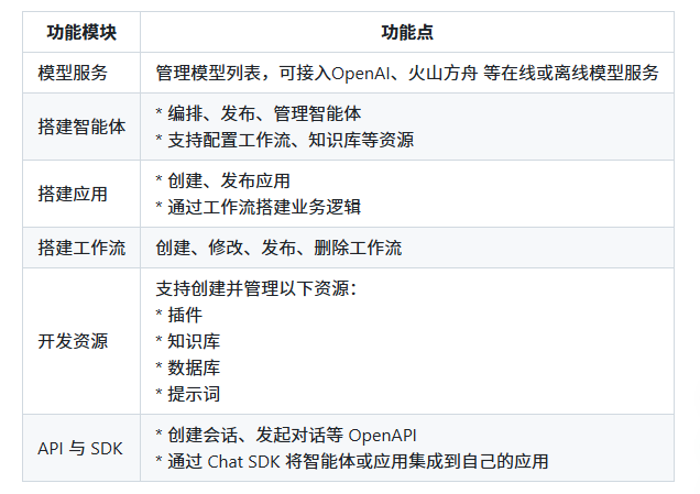 - 模型配置:部署 Coze Studio 开源版之前,必须配置模型服务,否则无法在搭建智能体、工作流和应用时选择模型。