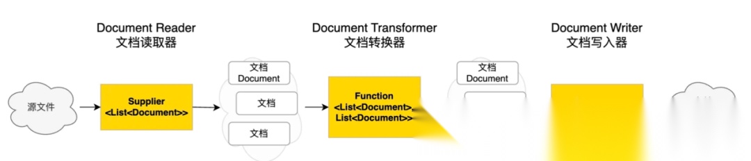 - DocumentWriter:将文档列表保存到存储中(可以是向量数据库,也可以是其他存储)