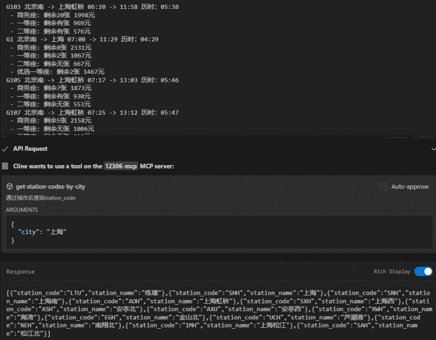 3、铁路12306MCP工具测试