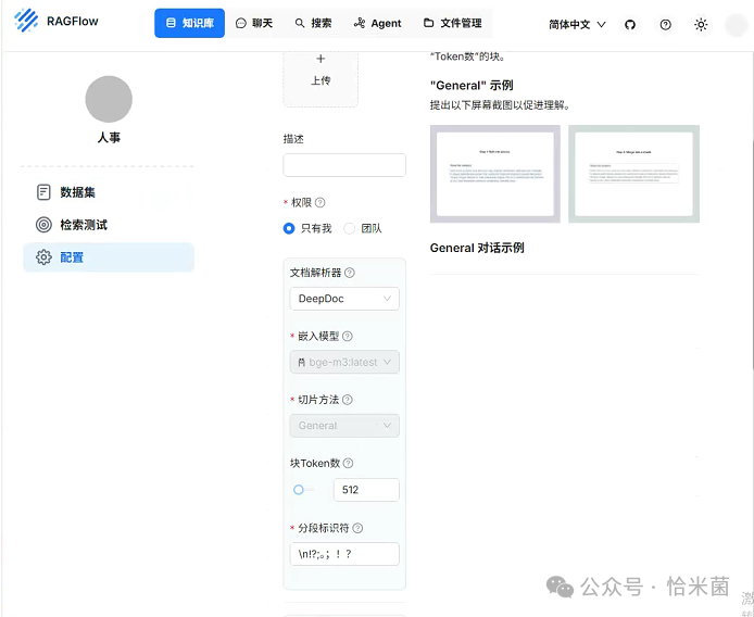 上传文件 → 选择分块模板(如 PDF 分块)。