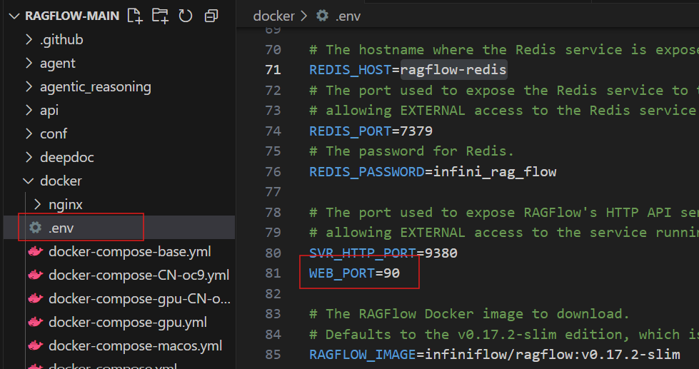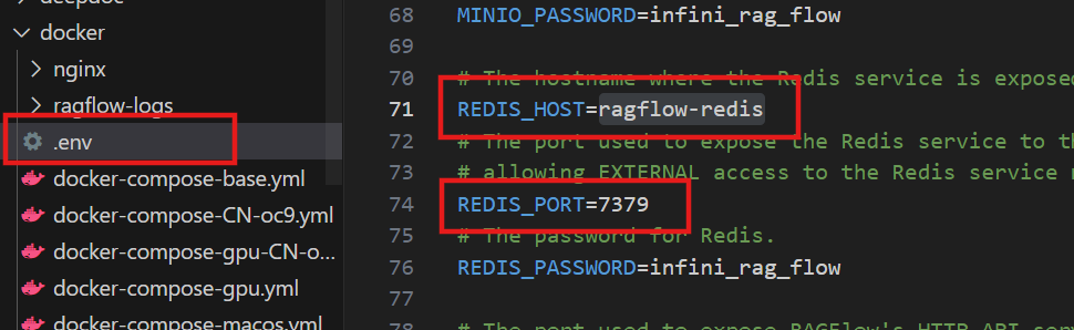 .env文件里,将REDIS_HOST修改为ragflow-redis ,将REDIS_PORT改为7379