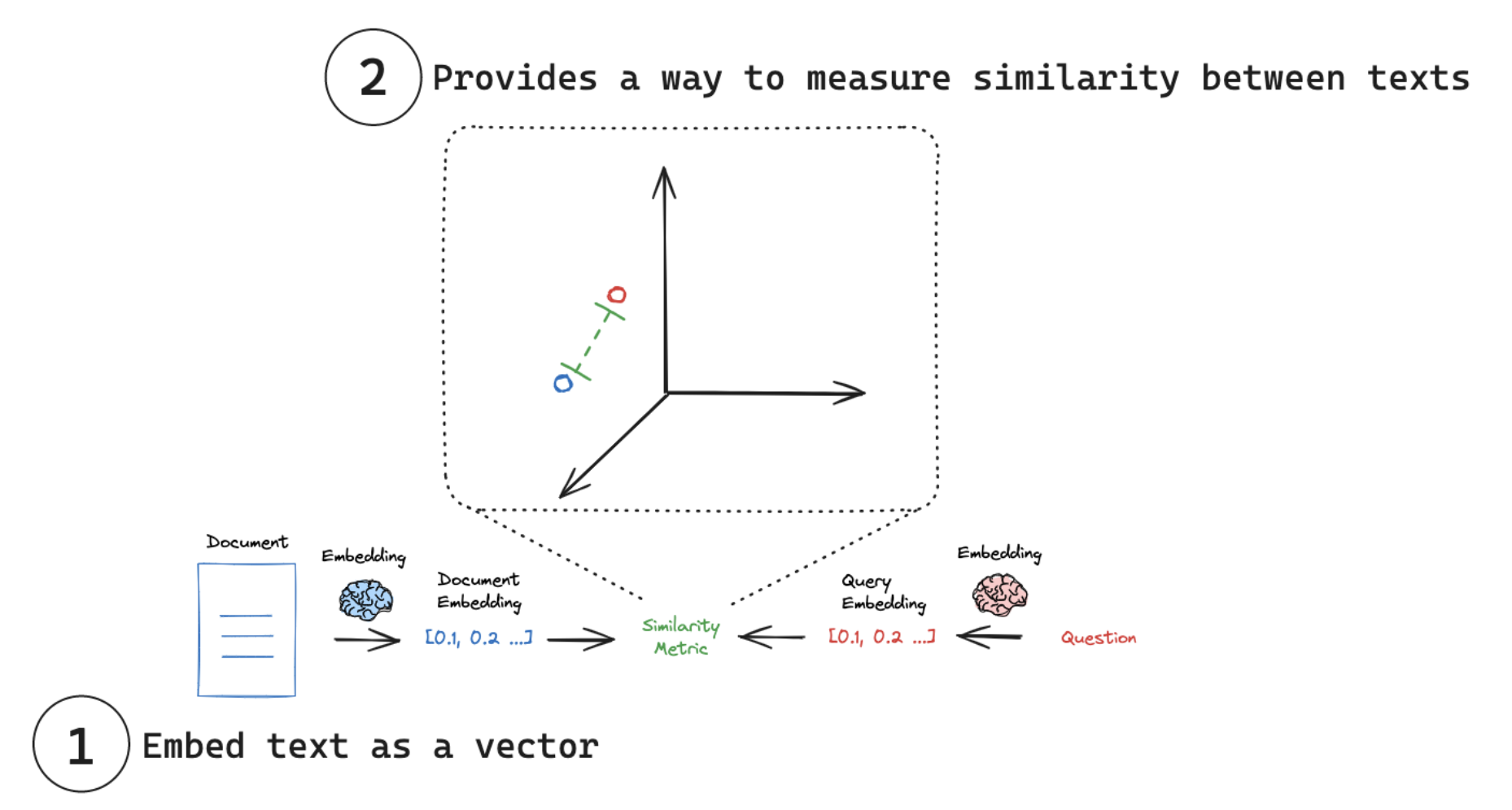 嵌入模型(embedding models)是许多检索系统的核心。嵌入模型将人类语言转换为机器能够理解并快速准确比较的格式。这些模型以文本作为输入,生成一个固定长度的数字数组。嵌入使搜索系统不仅能够基于关键词匹配找到相关文档,还能够基于语义理解进行检索。主要应用之一是rag.