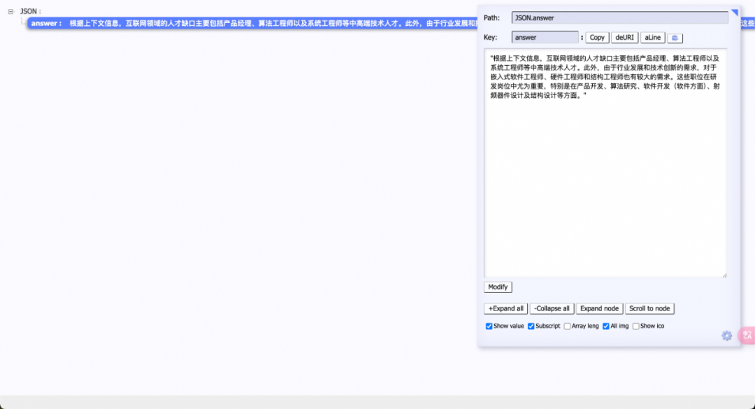 也可以通过访问 http://localhost:3000/rag/generate?question=互联网的人才缺口有哪些