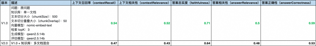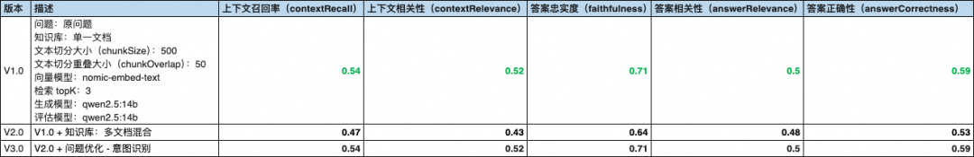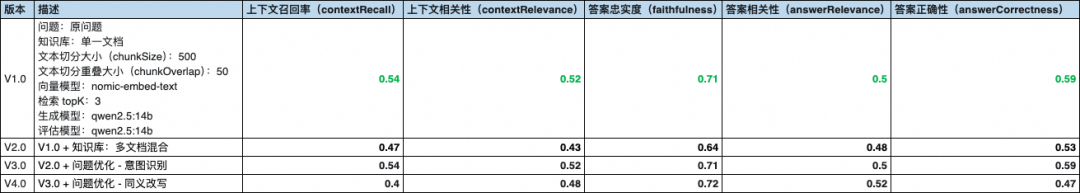 本文将以 V2.0 作为基准版本,以此来验证对用户问题进行查询增强后的效果。