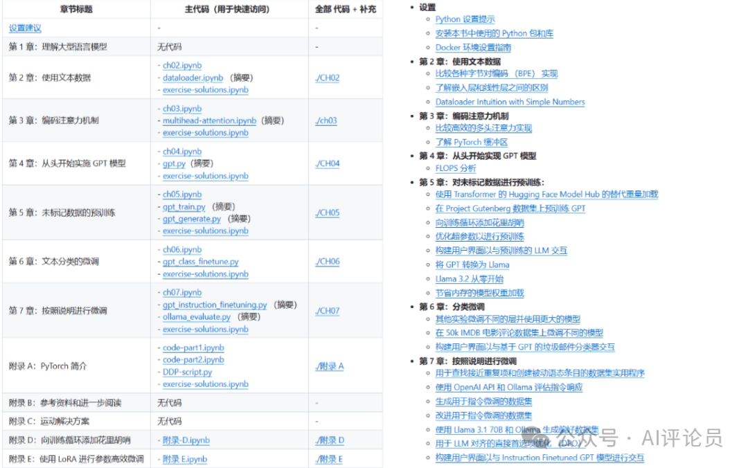 可以看到目录,完全从零基础出发,掰开揉碎的讲解怎么准备文本数据、实现attention、构建GPT-2网络、fine tune 二分类和instruction的任务,后面还有PyTorch和深度学习基础内容,一本书看完就能入门LLM了