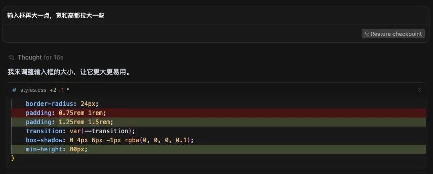 如果不清楚怎么用这段代码去替换也没关系,直接发给 cursor,它会帮你在需要替换的文件自己替换。