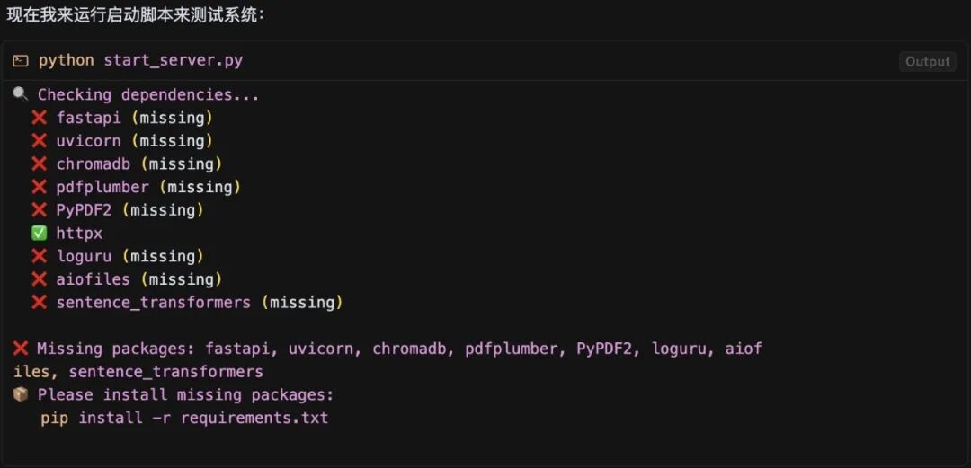 安装完后继续测试,如果出现问题它会找办法解决,但是有的时候需要人来批准,所以还是要看着它干活的。