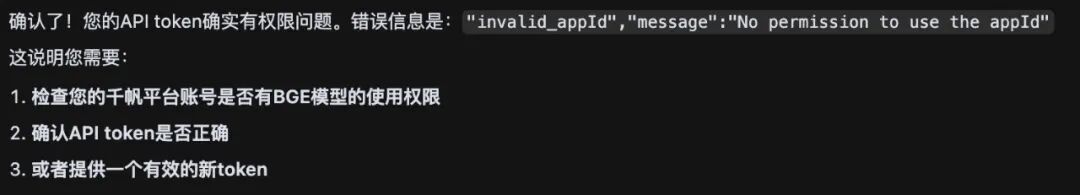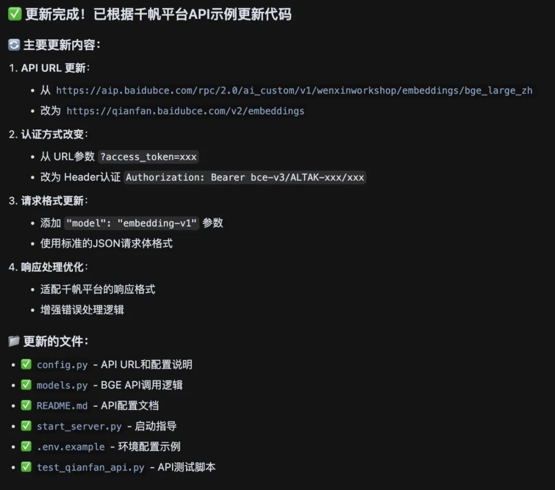 过程中可能遇到各种问题,直接描述清楚就可以,基本都可以解决。比如,我上传文件后并没有返回向量数据,我直接把问题发给它,它经过一系列排查后定位到了问题。