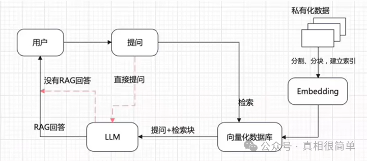 RAG(检索增强生成)结合了信息检索与大型语言模型,从外部知识库中检索信息,作为输入提供给大模型,增强模型生成答案的能力,分为三个阶段: