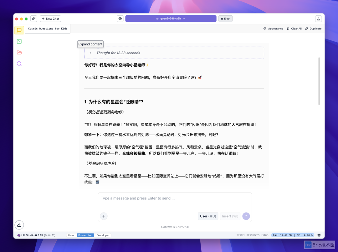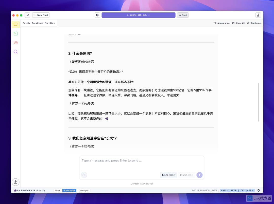 本文将详细介绍 Qwen3-30B-A3B 模型在本地部署过程及其全面能力测试。通过 LM Studio 等工具,在个人设备上部署此模型,体验从数学推理、逻辑分析到创意写作、多语言翻译及代码生成的全方位 AI 能力,看下这款强大的大语言模型真正的能力如何。